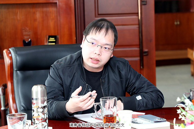 2021年12月1日,湖南省林業(yè)局經(jīng)發(fā)中心四級調(diào)研員吳云凌、湖南省林業(yè)產(chǎn)業(yè)協(xié)會秘書長文文、長沙市林業(yè)局森林資源管理處處長肖向陽、瀏陽市林業(yè)局副局長程敏、瀏陽林業(yè)局林權(quán)管理服務(wù)中心副主任楊鋒一行蒞臨綠之韻集團調(diào)研。綠之韻集團董事、總裁勞嘉,產(chǎn)品綜合管理部總監(jiān)王薇,企業(yè)技術(shù)中心主任賀煒等全程陪同。