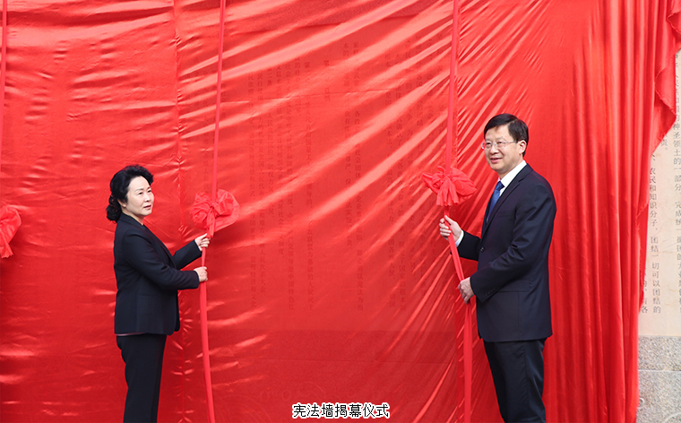 2021年12月4日是第八個國家憲法日,也是我國第四次開展“憲法宣傳周”活動。為全面貫徹黨的十九大和十九屆六中全會精神,深入學習貫徹習近平法治思想和習近平總書記“七一”重要講話精神,結(jié)合“八五”普法規(guī)劃實施,大力加強憲法學習宣傳,弘揚憲法精神,維護憲法權(quán)威,推動憲法全面實施,12月3日下午,長沙市人大常委會隆重舉行國家憲法日活動暨長沙市人大機關(guān)憲法墻揭幕儀式。長沙市人大常委會黨組書記、主任謝衛(wèi)東為憲法墻揭幕,長沙市人大常委會副主任王國海、芮英姿、羅衡寧、張智勇、袁黎明、盧鴻鳴、曹再興,市人大常委會黨組成員、辦公廳主任繆晨光等領(lǐng)導出席揭幕儀式。綠之韻集團董事長胡國安作為新當選的長沙市第十六屆人大代表受邀參加活動。