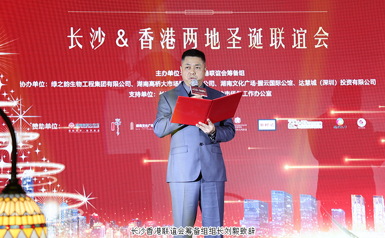 活動伊始,胡國安董事長致歡迎辭。他首先代表香港長沙聯(lián)誼會向熱情參與此次“心系香江·情滿湘江”長沙&香港兩地圣誕聯(lián)誼會的家人朋友們致以熱烈的歡迎和節(jié)日的問候。長期以來,廣大在長香港同胞積極參與長沙社會事務,為推動長沙和香港交流合作發(fā)揮了重要作用。長沙作為湖南的省會城市,不僅僅是媒體藝術之都,也是如今的網紅城市,更是廣大企業(yè)家們的創(chuàng)業(yè)之都與幸福家園。希望所有在長沙的港籍企業(yè)家朋友能夠扎根長沙,在長沙創(chuàng)業(yè)興業(yè),為長沙的經濟社會發(fā)展貢獻力量。最后,他預祝長沙&香港兩地圣誕聯(lián)誼會取得圓滿成功。
