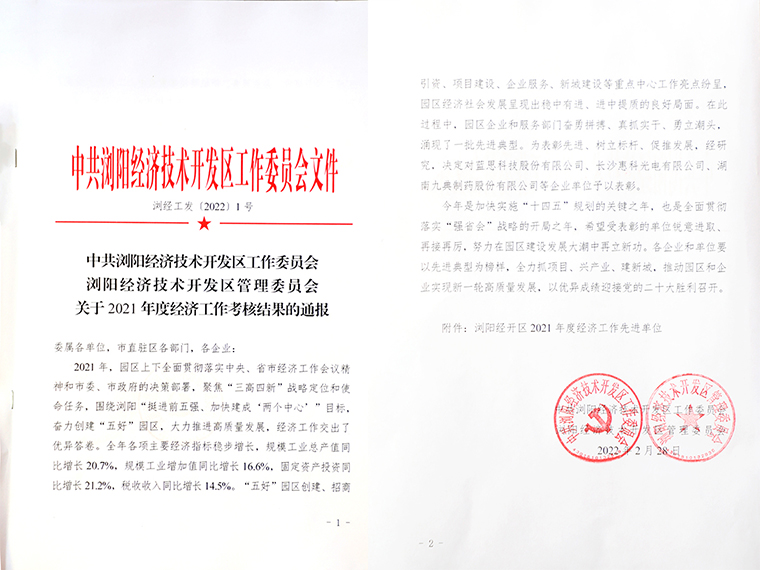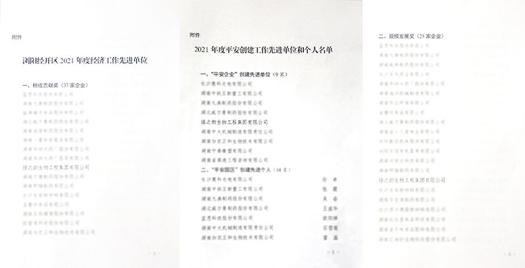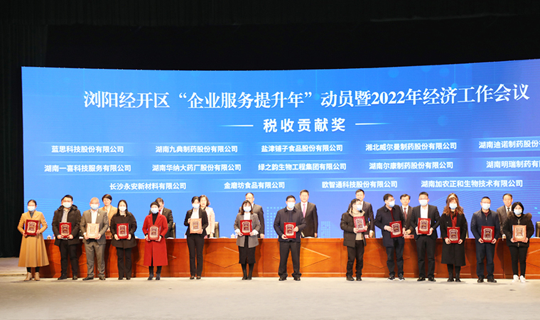 瀏陽(yáng)市委副書(shū)記、市長(zhǎng)王雄文宣讀瀏陽(yáng)經(jīng)開(kāi)區(qū)2021年度經(jīng)濟(jì)工作考核結(jié)果。大會(huì)對(duì)2021年度先進(jìn)企業(yè)及個(gè)人予以集中表彰,并進(jìn)行2022年一季度“開(kāi)門(mén)紅”重特大項(xiàng)目集中簽約。綠之韻集團(tuán)憑借過(guò)去一年取得的突出成績(jī),被國(guó)家級(jí)瀏陽(yáng)經(jīng)開(kāi)區(qū)管委會(huì)授予2021年度“稅收貢獻(xiàn)獎(jiǎng)”、“規(guī)模發(fā)展獎(jiǎng)”和“'平安企業(yè)'創(chuàng)建先進(jìn)單位。