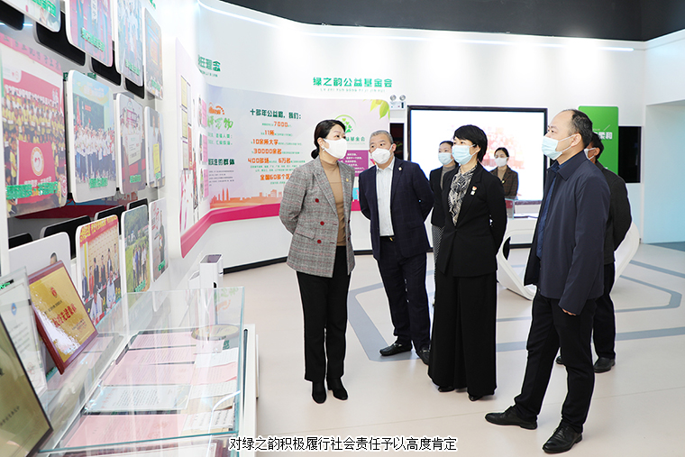 在綠之韻國(guó)際會(huì)議中心展廳,勞嘉總裁就企業(yè)基本情況、生產(chǎn)經(jīng)營(yíng)、市場(chǎng)布局、依法納稅、非公黨建和公益慈善等方面的工作情況向調(diào)研組一行做了詳細(xì)匯報(bào)。多年來(lái),綠之韻不斷加大科研投入,不斷深化“產(chǎn)學(xué)研”合作,先后與多所科研機(jī)構(gòu)、高等院校達(dá)成戰(zhàn)略合作,成立了產(chǎn)品專家委員會(huì),不斷提升產(chǎn)品核心競(jìng)爭(zhēng)力。在企業(yè)發(fā)展的同時(shí),公司積極承擔(dān)社會(huì)責(zé)任,踴躍參與和傾情捐助了100多項(xiàng)公益事業(yè),累計(jì)捐贈(zèng)款物7000多萬(wàn)元。