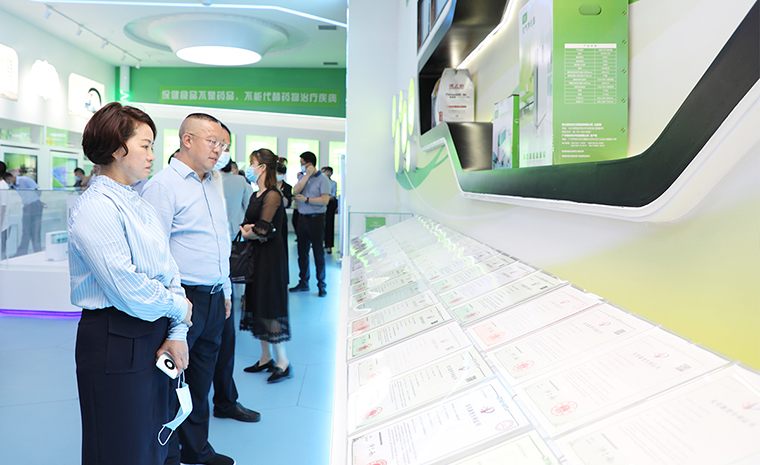 隨后,調(diào)研組一行來(lái)到綠之韻集團(tuán),參觀了綠之韻國(guó)際會(huì)議中心多功能形象展示廳和黨建文化教育基地。胡國(guó)安董事長(zhǎng)就企業(yè)基本情況、產(chǎn)品研發(fā)、非公黨建和公益慈善等方面的工作向調(diào)研組一行做了詳細(xì)介紹。多年來(lái),綠之韻積極響應(yīng)政府號(hào)召,不斷加大科研投入、深化“產(chǎn)學(xué)研”合作,先后與南京大學(xué)、湖南農(nóng)業(yè)大學(xué)、湖南省中醫(yī)藥大學(xué)、湖南中醫(yī)藥研究院等科研機(jī)構(gòu)、高等院校達(dá)成戰(zhàn)略合作,成立了產(chǎn)品專家委員會(huì),提升產(chǎn)品核心競(jìng)爭(zhēng)力。2021年11月,綠之韻集團(tuán)博士后科研流動(dòng)站協(xié)作研發(fā)中心正式授牌,標(biāo)志著綠之韻“一站三中心”的高層次人才培養(yǎng)與科研創(chuàng)新平臺(tái)的戰(zhàn)略布局初步成型。