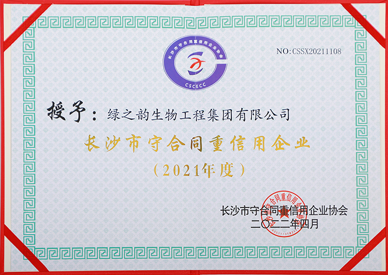 近日,湖南省守合同重信用企業(yè)協(xié)會(huì)、長(zhǎng)沙市守合同重信用企業(yè)協(xié)會(huì)發(fā)布了2021年度湖南省、長(zhǎng)沙市守合同重信用企業(yè)公示名單。綠之韻集團(tuán)憑借完善的企業(yè)誠信建設(shè)體系與科學(xué)的企業(yè)管理水平,再次榮獲“湖南省守合同重信用企業(yè)”“長(zhǎng)沙市守合同重信用企業(yè)”榮譽(yù)稱號(hào)。