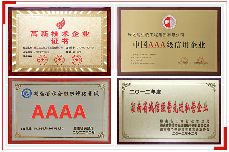 “和誠立信,競(jìng)超興業(yè)”是綠之韻始終秉承的經(jīng)營(yíng)宗旨。自創(chuàng)立以來,公司堅(jiān)持以規(guī)范為根本、以責(zé)任為使命、以品質(zhì)為生命,立足健康可持續(xù)發(fā)展,維護(hù)消費(fèi)者合法權(quán)益,傳遞行業(yè)正能量,不僅在企業(yè)品牌、戰(zhàn)略、管理、文化等方面實(shí)現(xiàn)了大幅度提升,而且還不遺余力地為行業(yè)培養(yǎng)了許多行業(yè)精英人才,為民族品牌的良性發(fā)展與崛起貢獻(xiàn)了自己的力量。公司連續(xù)十多年被授予“湖南省守合同重信用企業(yè)”,連續(xù)多年被授予納稅信用A級(jí)榮譽(yù),先后獲評(píng)“國(guó)家高新技術(shù)企業(yè)”“中國(guó)企業(yè)誠信經(jīng)營(yíng)示范單位”“中國(guó)AAA級(jí)信用企業(yè)”“湖南省誠信經(jīng)營(yíng)先進(jìn)私營(yíng)企業(yè)”“等殊榮。