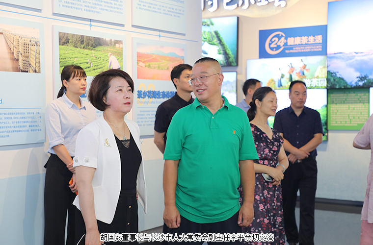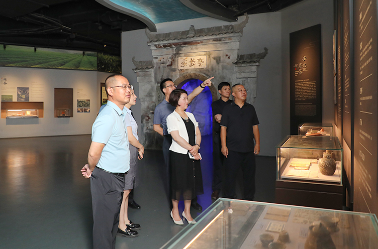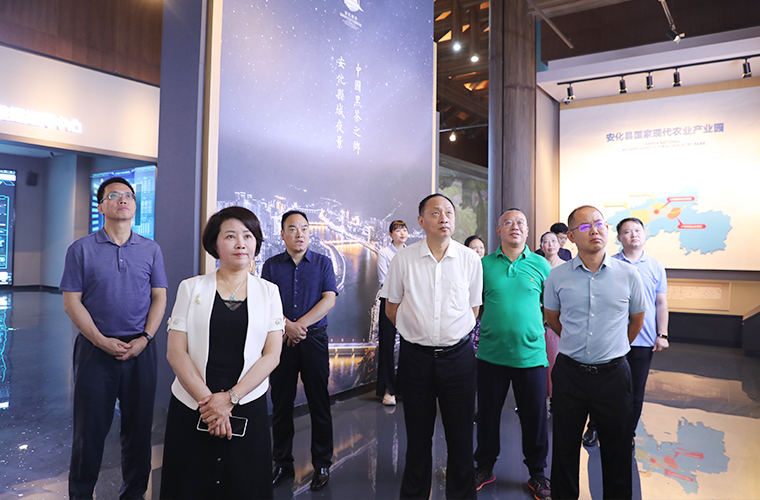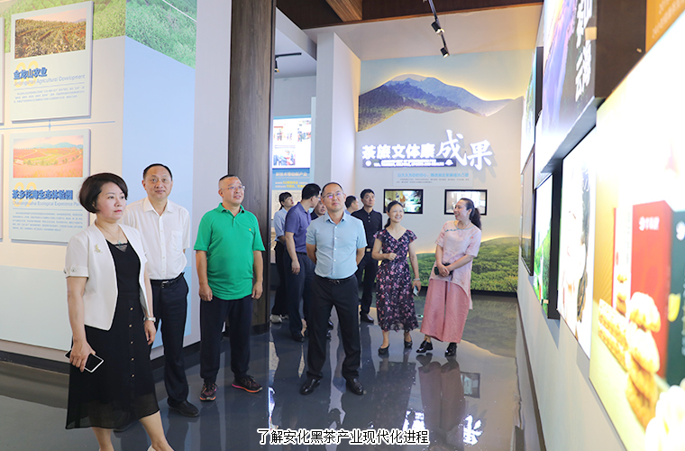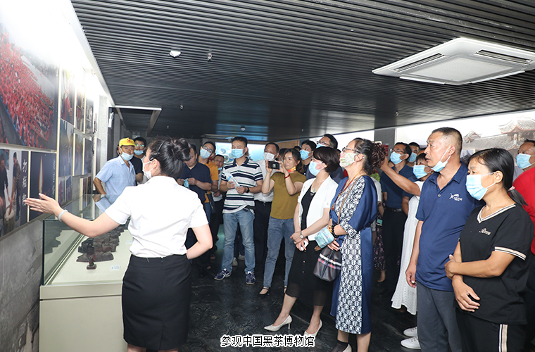 7月6日,考察團一行來到了安化縣國家現(xiàn)代農(nóng)業(yè)產(chǎn)業(yè)園成果展示館。在講解員的帶領(lǐng)下,考察團從“產(chǎn)業(yè)發(fā)展”“科研創(chuàng)新”“綠色生態(tài)”“茶旅文康”“品牌建設(shè)”“脫貧致富”六大園區(qū)創(chuàng)建成果及“現(xiàn)代茶園”“現(xiàn)代智造”“現(xiàn)代茶倉”“現(xiàn)代產(chǎn)品”“現(xiàn)代營銷”“現(xiàn)代服務(wù)”六個方面深入了解了安化黑茶產(chǎn)業(yè)的現(xiàn)代化進程。中國黑茶博物館緊鄰安化黃沙坪古茶市。該館主樓9層,高39米,裙樓兩層,采用中國傳統(tǒng)樓閣式建筑風(fēng)格,工藝精湛,造型宏偉,是融展示收藏和觀光旅游于一體的標(biāo)志性建筑,是全國唯一展示黑茶及其文化的專題博物館。安化黑博物館既是展示安化文化和形象的重要窗口,也已成為安化一張靚麗的城市名片。
