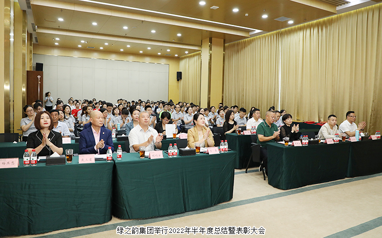 7月22日,綠之韻集團舉行2022年半年度總結暨表彰大會。綠之韻集團董事長胡國安、董事總裁勞嘉攜集團高管及全體員工參加會議。大會全面總結了上半年度各項工作,并對下半年工作進行縝密部署。