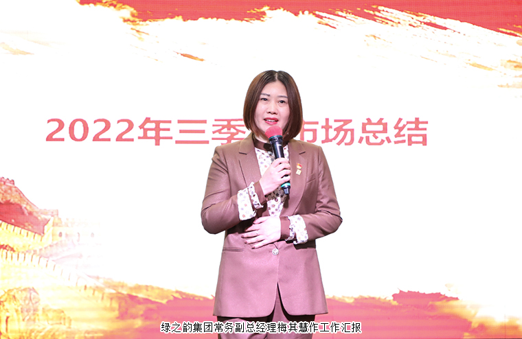 回望過去的奮斗路,大會(huì)首先通過視頻回顧了公司三季度獲得的重要成績(jī)。遙望未來的奮進(jìn)路,在會(huì)上,綠之韻國(guó)際商學(xué)院常務(wù)副院長(zhǎng)陳敏、綠之韻集團(tuán)常務(wù)副總經(jīng)理梅其慧、綠之韻集團(tuán)市場(chǎng)營(yíng)銷中心總經(jīng)理戴三省分別回顧了過去三個(gè)月市場(chǎng)工作所取得的成就,也提出了下階段工作的目標(biāo)及規(guī)劃,更是為大家加油打氣,要擼起袖子、全力以赴,在最后一個(gè)季度為2022年畫上一個(gè)完美的句號(hào)。