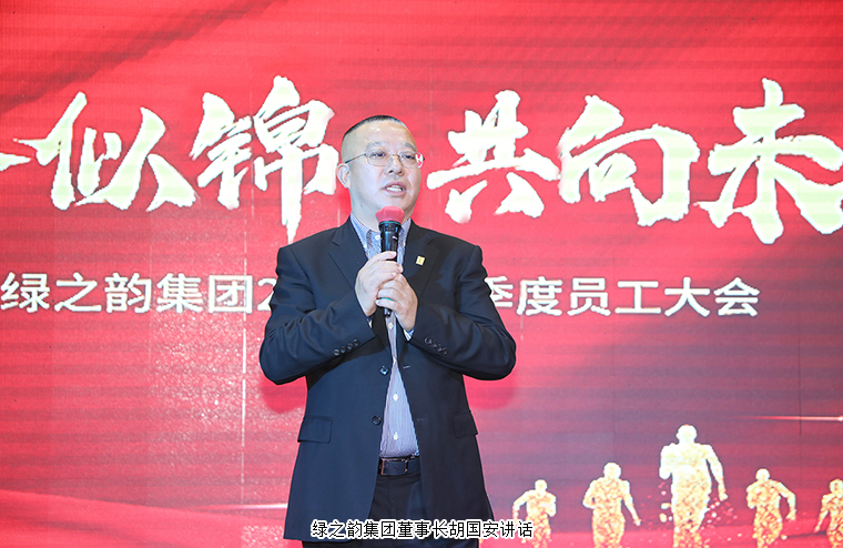 最后,在全場(chǎng)的期待及掌聲中,綠之韻集團(tuán)董事長(zhǎng)胡國(guó)安上臺(tái)作重要講話。他首先代表集團(tuán)公司向獲得“五年服務(wù)英才獎(jiǎng)”“十年服務(wù)忠誠(chéng)獎(jiǎng)”的獲獎(jiǎng)員工表示熱烈祝賀,并向全體員工的辛勤付出致以誠(chéng)摯的謝意。他表示,很多人覺得自己在平凡的崗位上非常普通,但是如果你把自己像一顆螺絲釘一樣永遠(yuǎn)釘在那個(gè)崗位上,那就會(huì)成為問題的發(fā)現(xiàn)者和終結(jié)者。春耕夏長(zhǎng)秋收冬藏,五年和十年受到嘉獎(jiǎng)的同事都是因?yàn)椴粩嗟嘏蛨?jiān)持,才在綠之韻這個(gè)舞臺(tái)收獲了成長(zhǎng),實(shí)現(xiàn)了人生價(jià)值,成為了同事們學(xué)習(xí)的榜樣、父母的驕傲和家族的榮耀。綠之韻是一個(gè)發(fā)展中的企業(yè)、成長(zhǎng)型的企業(yè),同時(shí)也是一個(gè)學(xué)習(xí)型企業(yè),我們將始終堅(jiān)持長(zhǎng)期主義,人才的長(zhǎng)期主義、產(chǎn)品的長(zhǎng)期主義、文化的長(zhǎng)期主義,讓企業(yè)和員工伙伴都能夠得到長(zhǎng)足的發(fā)展。五年、十年在每一個(gè)人的人生長(zhǎng)河中只是滄海一粟,但希望在綠之韻的成長(zhǎng)經(jīng)歷能夠成為大家人生中最精彩的那一段旅程!綠之韻馬上將迎來二十周年,希望所有綠之韻人以高度的責(zé)任心和強(qiáng)烈的使命感,全力以赴去迎接挑戰(zhàn)。希望每一位家人,既有追趕太陽的目標(biāo),又有欣賞月亮情懷,讓我們始終一路相隨,精耕產(chǎn)品,把支部建在連上,深入市場(chǎng)一線,奮勇拼搏,同心同力開創(chuàng)新的輝煌!