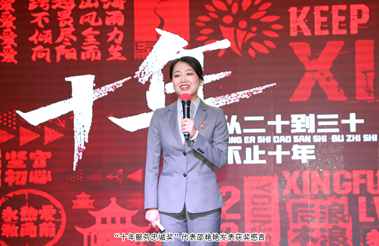做有品質(zhì)的產(chǎn)品,提供有溫度的服務(wù),一個(gè)優(yōu)秀的企業(yè),一定是有一批優(yōu)秀員工在全身心的投入。經(jīng)歷了三季度,綠之韻擁抱變化,迎接挑戰(zhàn),又迎來了一批標(biāo)桿,他們用自身行動(dòng)證明,逆風(fēng)飛揚(yáng),贏在堅(jiān)持。本次大會(huì)頒發(fā)了“五年服務(wù)英才獎(jiǎng)”“十年服務(wù)忠誠(chéng)獎(jiǎng)”等獎(jiǎng)項(xiàng)。戴明玉、譚慧洋、林智文、劉偉、賀瑤、廖娜、劉靜、徐繼雷、袁登科、劉燚淼、李勇男、董詩媞、李斌榮膺“五年服務(wù)英才獎(jiǎng)”,邵艷艷、侯俊霞、文冰、王娟、湛芳瓊、阮毅、夏丹、楊丹、羅黎、胡樹鋒、李向宇榮膺“十年服務(wù)忠誠(chéng)獎(jiǎng)”,綠之韻集團(tuán)副總裁胡均安、綠之韻集團(tuán)董事總裁勞嘉分別為獲獎(jiǎng)員工頒發(fā)獎(jiǎng)?wù)屡c榮譽(yù)證書,并致以熱烈祝賀?!拔迥攴?wù)英才獎(jiǎng)”代表戴明玉和“十年服務(wù)忠誠(chéng)獎(jiǎng)”代表邵艷艷、楊丹分別發(fā)表獲獎(jiǎng)感言。