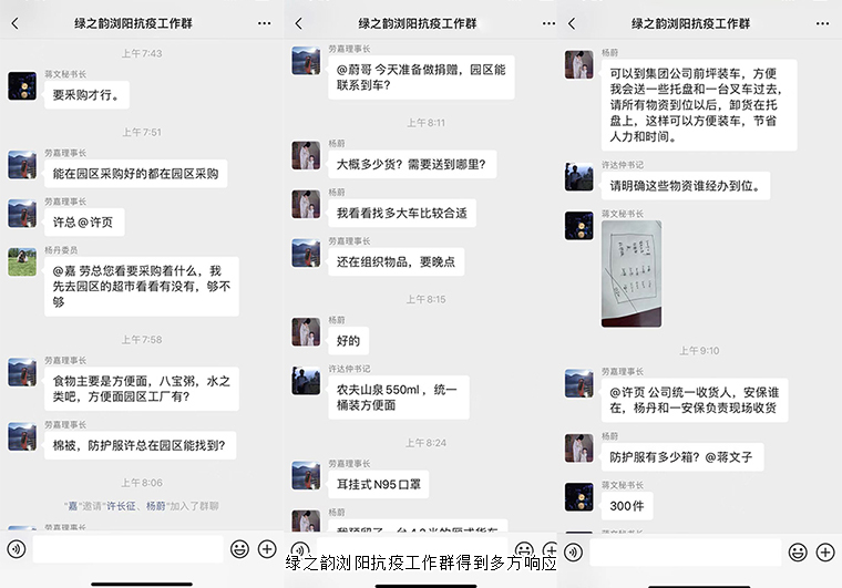 共克時(shí)艱,搭建抗疫“暖心橋”。在這場(chǎng)疫情大考中,綠之韻快速反應(yīng),積極作為,第一時(shí)間便成立安全防控小組并制定應(yīng)急預(yù)案,始終把員工健康安全放在第一位,全力做好人員管控、健康排查、防疫宣傳、環(huán)境消毒、物資儲(chǔ)備等工作。綠之韻集團(tuán)董事長(zhǎng)胡國(guó)安,董事總裁、綠之韻公益基金會(huì)理事長(zhǎng)勞嘉專(zhuān)門(mén)成立瀏陽(yáng)抗擊疫情工作小組,親自指揮,聯(lián)動(dòng)綠之韻集團(tuán)黨委、工會(huì)、公益基金會(huì)、團(tuán)委,緊急籌措物資。瀏陽(yáng)市政協(xié)委員、綠之韻公益基金會(huì)秘書(shū)長(zhǎng)蔣文積極作為,廣泛聯(lián)絡(luò)抗疫物資和志愿者行動(dòng)。綠之韻集團(tuán)黨委副書(shū)記許達(dá)仲、黨委委員楊丹始終堅(jiān)守在防疫一線,號(hào)召留守園區(qū)的黨員、企業(yè)員工作為愛(ài)心志愿者參與防疫幫扶工作,守望相助、共克時(shí)艱,匯成了同心抗疫的暖心洪流。