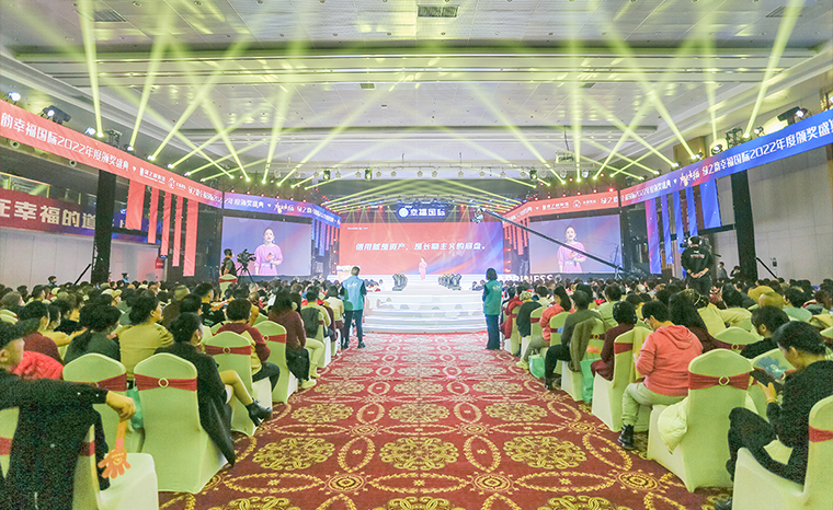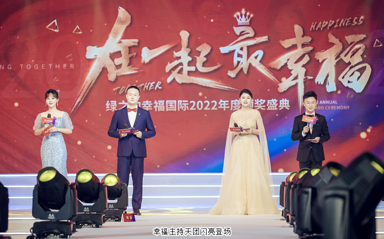 2023年1月11日晚,在一起·最幸福——綠之韻幸福國(guó)際2022年度頒獎(jiǎng)盛典在集團(tuán)總部國(guó)際會(huì)議中心盛大舉行。綠之韻集團(tuán)董事長(zhǎng)胡國(guó)安,董事、總裁勞嘉,副總裁胡均安,副總裁、幸福導(dǎo)師夏運(yùn)良及高管團(tuán)隊(duì),與來(lái)自全國(guó)各地的1000余名綠之韻家人匯聚一堂,共襄盛舉。大會(huì)全程通過(guò)PC、移動(dòng)端在線互動(dòng)視頻直播,線上近60000人次共同收看和分享了大會(huì)盛況。