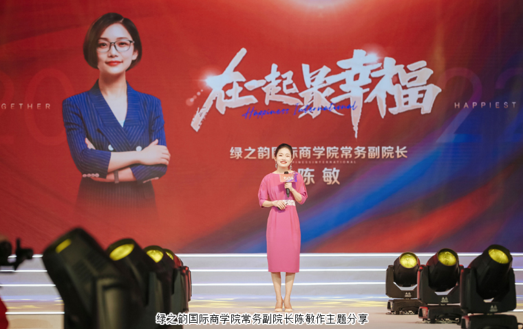 隨后,綠之韻國(guó)際商學(xué)院常務(wù)副院長(zhǎng)陳敏作《在一起,最幸?!返闹黝}分享,與綠之韻事業(yè)伙伴們一起回顧了綠之韻幸福國(guó)際第一個(gè)三年成長(zhǎng)路上的幸??s影。
