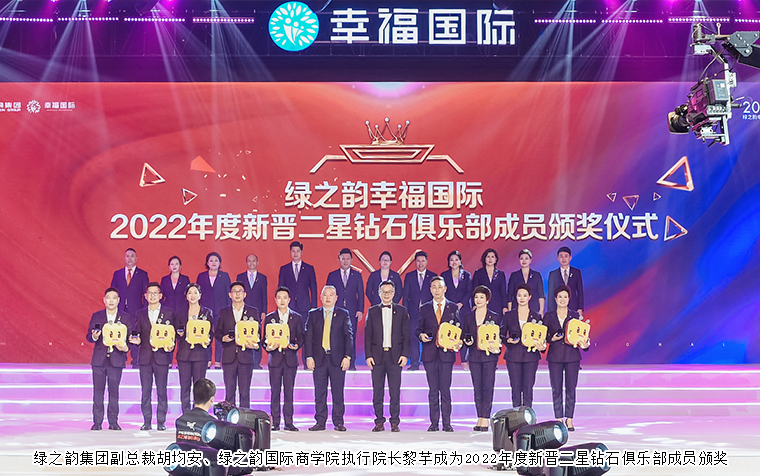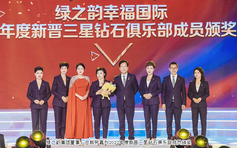 在幸福的道路上,有這樣一群堅(jiān)實(shí)的守護(hù)者,他們心懷熱愛,步履不停,用夢(mèng)想融合新生,用榮耀成就巔峰,他們是為幸福奮斗的高階精英,他們是本次進(jìn)入鉆石俱樂部的最強(qiáng)王者。勇者無(wú)畏,破繭成蝶,迎來(lái)屬于他們的鉆石榮耀之旅。綠之韻集團(tuán)董事、總裁勞嘉,綠之韻集團(tuán)副總裁胡均安,綠之韻國(guó)際商學(xué)院執(zhí)行院長(zhǎng)黎芋成,綠之韻國(guó)際商學(xué)院常務(wù)副院長(zhǎng)陳敏,綠之韻國(guó)際商學(xué)院副院長(zhǎng)、特聘教授侯俊霞分別為綠之韻幸福國(guó)際2022年度新晉一星、二星、三星鉆石俱樂部成員頒獎(jiǎng),獲獎(jiǎng)?wù)哧悤詵|、蘇裕涵、林景云分享獲獎(jiǎng)感言。