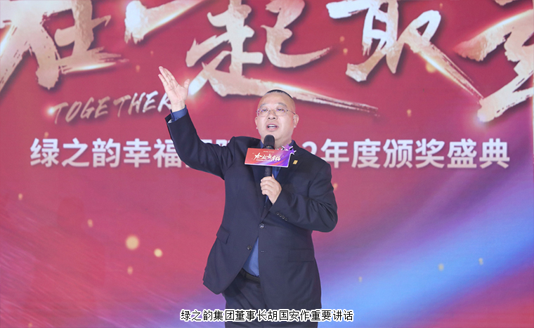 “路雖遠(yuǎn),行必至,事雖難,做必成”,大會(huì)最后,在全場(chǎng)最為熱烈的掌聲中,綠之韻集團(tuán)董事長(zhǎng)胡國(guó)安上臺(tái)向所有幸福代言人贈(zèng)寄語(yǔ)牌匾,并講話。他首先向大會(huì)現(xiàn)場(chǎng)以及通過(guò)在線互動(dòng)視頻觀看本次大會(huì)盛況的綠之韻家人致以熱烈的歡迎和誠(chéng)摯的問(wèn)候,并向每一位獲獎(jiǎng)?wù)弑硎緹崃业淖YR。他表示,感謝每一位奮斗的幸福代言人,三年來(lái),你們不畏艱難、不辭辛勞、不懼疫情,用不同形式,在不同地點(diǎn),全力的傳播著公司的企業(yè)文化,傳承中華五千年養(yǎng)生文化,積極推動(dòng)科技讓中醫(yī)養(yǎng)生走進(jìn)千家萬(wàn)戶的理念,為你們點(diǎn)贊!向所有的幸福代言人致敬!你們奮斗的身影,是2022最美的風(fēng)景!回看來(lái)路,繁花似錦;瞻望前程,乘風(fēng)鼓翼。乘著黨的二十大與兩會(huì)勝利召開的浩蕩東風(fēng),我們滿懷激情的跨入充滿希望的2023年。在一起,最幸福,伴著市場(chǎng)環(huán)境加速回暖、營(yíng)商環(huán)境持續(xù)優(yōu)化的鏗鏘足音,未來(lái)三年,在集團(tuán)公司的全力支持下,在現(xiàn)場(chǎng)每一位和通過(guò)視頻收看的綠之韻家人的支持下,我們一定能在新起點(diǎn)上再創(chuàng)新輝煌!