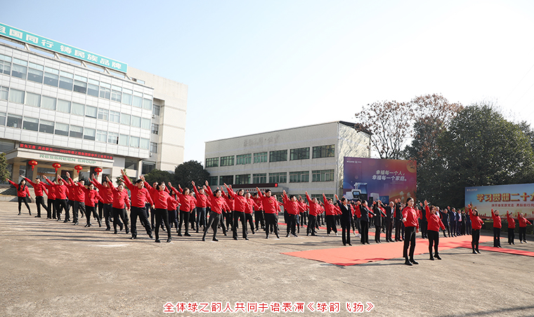 “心中藏著一個夢想,恒久比天長,不管前方的路多坎坷,風(fēng)雨有多狂,手握一束愛的光芒榮耀了時光,追尋人生的意義和生命的激揚(yáng)......”活動現(xiàn)場,全體綠之韻人唱響《綠韻飛揚(yáng)》,一同用自己的肢體語言以飽滿的熱情、昂揚(yáng)的斗志、嶄新的風(fēng)貌講述一個正在展翅飛翔的綠之韻集團(tuán),充分展現(xiàn)了綠之韻人的風(fēng)采,共同迎接激情的2023年。