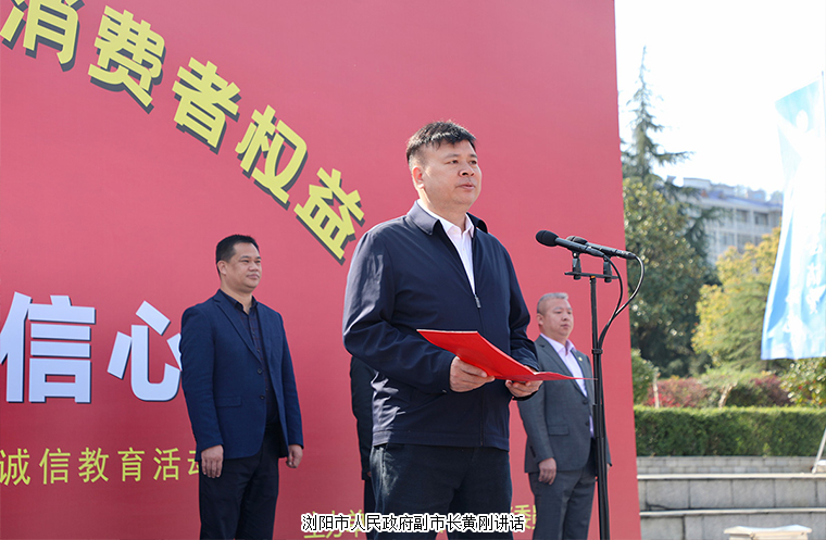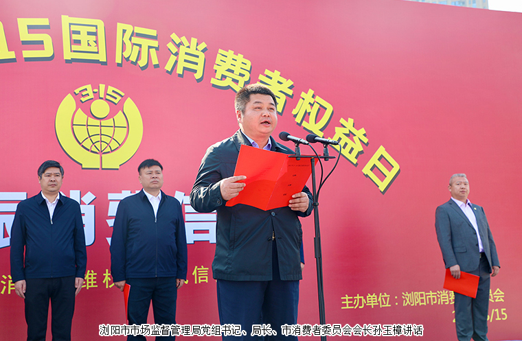 瀏陽市人民政府副市長黃剛講話。他首先代表瀏陽市委市政府向全市廣大消費者致以親切的問候,向辛勤工作在維權(quán)一線的廣大干部職工致以崇高的敬意,向積極參與消費者權(quán)益保護事業(yè)的社會各界朋友表示衷心的感謝。今年是黨的二十大開局之年,也是十四五規(guī)劃的關鍵之年,我們要緊緊圍繞“提振消費信心”這一主題,全面做好消費維權(quán)工作,切實維護廣大消費者的合法權(quán)益。瀏陽市消委和各相關職能部門要圍繞主題,廣泛開展各類主題宣傳活動,引導消費者依法維護自身權(quán)益,營造全社會共同關注支持消費者維權(quán)的工作氛圍。廣大經(jīng)營者要加強自律,依法誠信經(jīng)營,切實履行消費者權(quán)益保護的市場主體責任,以誠信塑造品牌,更好的為廣大消費者服務,為經(jīng)濟發(fā)展服務。廣大市民朋友要積極參與315活動,向各部門客觀的反映消費維權(quán)工作的意見建議,推動政府的工作改進,維護消費者的合法權(quán)益,營造一方消費凈土,事關民生和諧,事關發(fā)展大局,是我們的光榮使命和神圣事業(yè)。我們要以此次活動為契機,攜起手來,共同努力,為廣大消費者營造一個誠信、健康、安全、放心的消費環(huán)境,為全面建設現(xiàn)代化新瀏陽而努力奮斗。