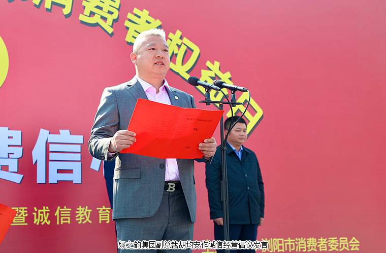 綠之韻集團副總裁胡均安作誠信經(jīng)營倡議發(fā)言。他首先向瀏陽市委市政府等各級領導一直以來的關心和支持致以了衷心的感謝。他表示,今年315的主題是“提振消費信心”。在今年的政府工作報告中,“著力擴大國內(nèi)需求”被放在了首位,促進國內(nèi)消費更是目前國內(nèi)經(jīng)濟的重中之重。消費回暖,加速了經(jīng)濟復蘇的進程。作為一家在瀏陽經(jīng)開區(qū)扎根20年的民營企業(yè),綠之韻集團始終秉承著“和誠立信、競超興業(yè)”的經(jīng)營宗旨,堅持打好“初心、規(guī)范、品質(zhì)、自律、責任”五張牌,自覺依法決策、守法經(jīng)營、規(guī)范管理、安全生產(chǎn),在誠信守法、扶危濟困中不斷健康發(fā)展壯大,樹立起了良好的企業(yè)形象。2023年是全面貫徹落實黨的二十大精神的開局之年,是瀏陽撤縣設市30年,同時也是綠之韻集團成立的20周年。綠之韻集團將繼續(xù)聚焦實業(yè),做精主業(yè),積極承擔企業(yè)社會責任,努力用更加優(yōu)質(zhì)的產(chǎn)品和服務去滿足人民群眾對美好生活的向往,為共同繪就中國式現(xiàn)代化的瀏陽圖景貢獻自己的一份力量。