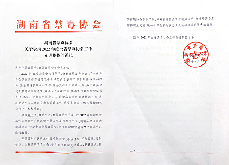 會議伊始,湖南省禁毒協(xié)會秘書長盧敏作工作報(bào)告,報(bào)告全面總結(jié)了2022年度全省禁毒協(xié)會工作。2022年,省禁毒協(xié)會整合社會資源,積極開展禁毒宣傳教育、吸毒人員戒治幫扶、走訪調(diào)研、撫恤慰問等工作,協(xié)會工作取得新成效。省禁毒協(xié)會獲評湖南省最美公益普法集體,湖南省禁毒全媒體中心獲評2022年度湖南省好網(wǎng)民項(xiàng)目, “我是答題王”湖南省禁毒知識競賽項(xiàng)目獲評2022年度湖南省最佳志愿服務(wù)項(xiàng)目, “青春手牽手”“健康無毒、青春無悔”禁毒宣傳項(xiàng)目攬獲第六屆中國青年志愿服務(wù)項(xiàng)目大賽金獎、銀獎。隨后,衡陽、常德市禁毒協(xié)會及優(yōu)秀禁毒講師代表在會上作經(jīng)驗(yàn)發(fā)言,交流探討了各地禁毒工作的經(jīng)驗(yàn)做法。會上湖南省禁毒協(xié)會決定對 2022 年禁毒協(xié)會工作成績突出的集體進(jìn)行表彰。湖南省禁毒協(xié)會常務(wù)理事、省公安廳禁毒總隊(duì)預(yù)防教育支隊(duì)支隊(duì)長、二級高級警長彭國清宣讀表揚(yáng)通報(bào)。綠之韻集團(tuán)被評為“2022年度湖南省禁毒協(xié)會工作先進(jìn)集體”。