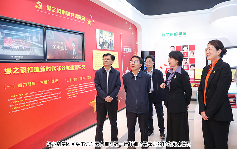 在黨建文化展示區(qū)域,綠之韻集團(tuán)黨委書(shū)記劉云向調(diào)研組一行詳細(xì)介紹綠之韻非公黨建情況。多年來(lái),集團(tuán)黨委堅(jiān)持構(gòu)建以集團(tuán)黨組織為核心,以集團(tuán)工會(huì)、公益基金會(huì)為主體,打造紅色基因塑造的新時(shí)代非公黨建新生態(tài),在全行業(yè)內(nèi)創(chuàng)建了第一家黨建文化教育基地,形成了具有綠之韻特色的非公黨建工作品牌。集團(tuán)黨委歷年來(lái)多次被各級(jí)黨組織授予“先進(jìn)基層黨組織”、“黨建示范點(diǎn)”、“標(biāo)桿引領(lǐng)先進(jìn)基層黨組織”等榮譽(yù)稱(chēng)號(hào)。