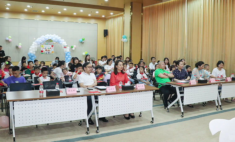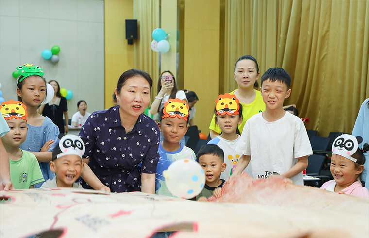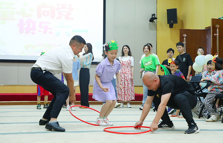 彩色主題墻、彩色氣球?qū)⒒顒?dòng)現(xiàn)場裝扮得充滿著濃濃的節(jié)日氛圍。工作人員穿上玩偶服,裝扮成“韻小寶”、“小兔子”,為她們送上五彩繽紛的氣球和節(jié)日的祝福。在“圈圈接力賽”、“重走長征路”、“滾圈圈”等一系列親子小游戲中,家長與孩子密切配合、相互協(xié)作,全場成為一片歡樂的海洋;孩子們自信地展示自己的才藝,跳街舞、即興籃球表演、背誦唐詩......孩子們在舞臺(tái)上閃閃發(fā)光,出色的表演,贏得滿場喝彩與掌聲。