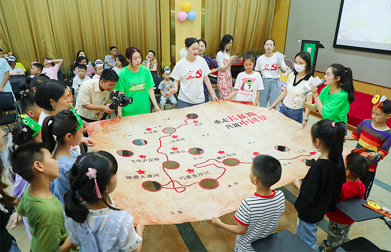 孩子們揮舞小紅旗,合唱《少年先鋒隊(duì)隊(duì)歌》、《沒有共產(chǎn)黨就沒有新中國》,高昂的歌聲、動(dòng)聽的旋律,共同感受國家的發(fā)展強(qiáng)大;通過聆聽少年英雄故事“小兵張嘎”、“小蘿卜頭”事跡;觀看“王二小”話?。灰黄鹛t色手語舞等,引導(dǎo)孩子們在紅色文化教育影響下,傳承紅色基因,積極陽光地走好童年每一步,做勇敢、堅(jiān)強(qiáng)、上進(jìn)的新一代。現(xiàn)場還組織小朋友們觀看了防溺水宣傳教育視頻,以寓教于樂、生動(dòng)形象的動(dòng)畫向孩子們傳授了自防自救知識,在防溺水知識搶答環(huán)節(jié),孩子們積極參與,氣氛十分熱烈,紛紛表示,在此次活動(dòng)中受益匪淺,日后將一定會(huì)牢記安全要點(diǎn)。