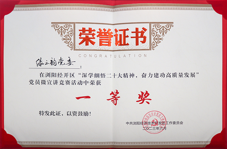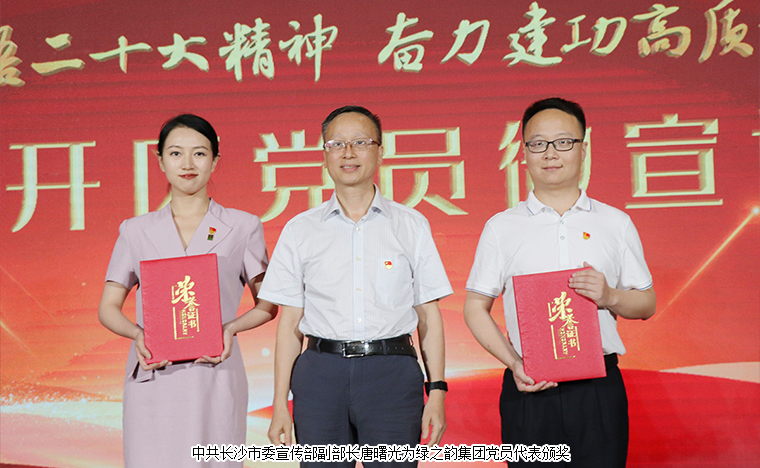 為深入學習宣傳貫徹黨的二十大精神,推動黨的二十大精神落地見效,落實省委、市委組織部“一月一課一片一實踐”活動要求,不斷激發(fā)廣大青年黨員干部的榮譽感、責任感、使命感,2023年6月21日,瀏陽經(jīng)開區(qū)舉辦“深學細悟黨的二十大精神,奮力建功園區(qū)高質(zhì)量發(fā)展”黨員微宣講競賽活動。中共長沙市委宣傳部副部長、一級調(diào)研員唐曙光,瀏陽經(jīng)開區(qū)黨工委書記鄭以仁,長沙市委兩新工委專職副書記肖劍鋒,瀏陽經(jīng)開區(qū)黨工委委員、管委會副主任、企業(yè)黨委書記何六生,區(qū)黨工委委員、紀工委書記肖賽男等領(lǐng)導出席活動。綠之韻集團黨委書記劉云、工會主席馮紅帶領(lǐng)集團多名黨員代表參加活動。綠之韻集團選送的《青春中國》作品以全場最高分斬獲一等獎,向建黨102周年獻禮。