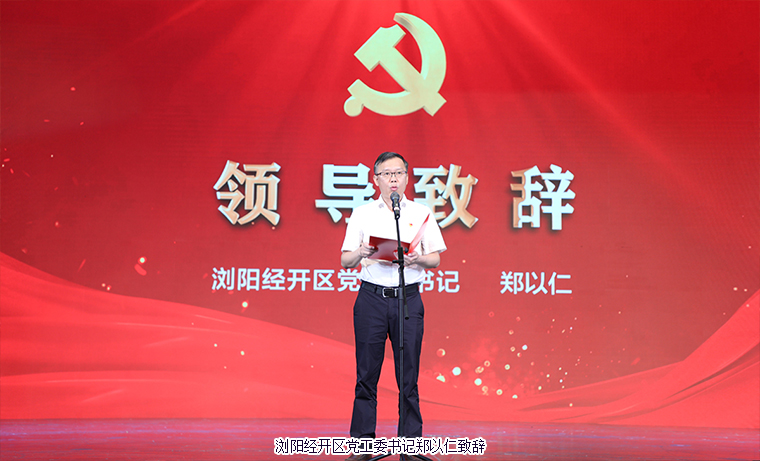 大會(huì)伊始,瀏陽(yáng)經(jīng)開區(qū)黨工委書記鄭以仁致辭。他表示,在中國(guó)共產(chǎn)黨誕辰102周年之際,我們?cè)谶@里隆重聚會(huì)共同慶祝黨的生日,大力表彰在園區(qū)高質(zhì)量發(fā)展進(jìn)程中涌現(xiàn)出來(lái)的先進(jìn)集體和先進(jìn)個(gè)人,以先進(jìn)的事跡感染人、吸引人,以崇高的精神激勵(lì)人、鼓舞人,進(jìn)一步激發(fā)園區(qū)各級(jí)黨組織和廣大黨員干部人員見(jiàn)賢思齊、創(chuàng)先爭(zhēng)優(yōu),著力營(yíng)造學(xué)習(xí)先進(jìn)、崇尚先進(jìn)、爭(zhēng)當(dāng)先進(jìn)的良好氛圍。他代表黨工委向今天受到表彰的組織和個(gè)人表示熱烈的祝賀,向奮斗在各條戰(zhàn)線上的廣大黨員同志致以崇高的敬意和節(jié)日的問(wèn)候。2023年是全面貫徹落實(shí)黨的二十大精神的開局之年,也是瀏陽(yáng)經(jīng)開區(qū)高質(zhì)量發(fā)展、金陽(yáng)新城建設(shè)的跨越之年。各級(jí)黨組織和廣大黨員要把加強(qiáng)黨的全面領(lǐng)導(dǎo)作為行動(dòng)指南,凝心聚力、實(shí)干擔(dān)當(dāng)、勇建新功。要在旗幟鮮明講政治上做示范,成為絕對(duì)忠貞的踐行者;要在強(qiáng)化組織建堡壘上下功夫,成為紅色引擎的助推器;要在錘煉打磨真本領(lǐng)上當(dāng)表率,成為攻堅(jiān)克難的帶頭人。他希望,黨員同志能高舉習(xí)近平新時(shí)代中國(guó)特色社會(huì)主義思想的偉大旗幟,不斷推動(dòng)黨建工作再上新臺(tái)階,以高質(zhì)量黨建賦能高質(zhì)量發(fā)展,為加快建設(shè)具有核心競(jìng)爭(zhēng)力的現(xiàn)代化產(chǎn)業(yè)園區(qū)與努力奮斗。