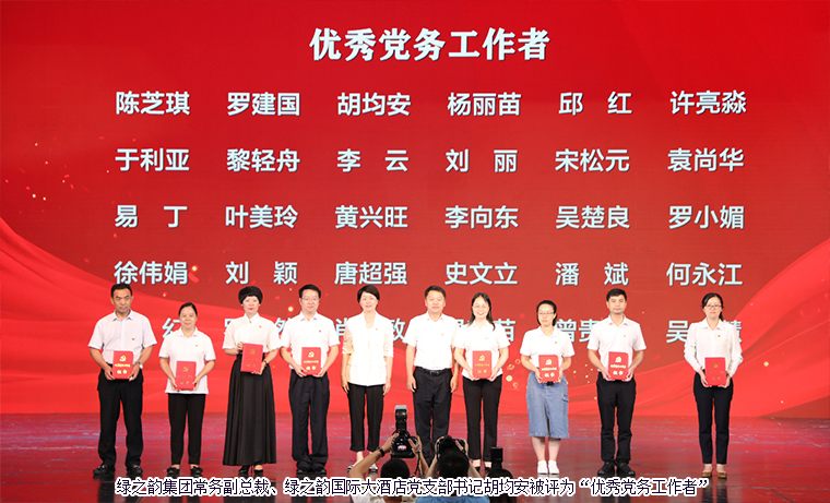 會(huì)上,瀏陽(yáng)經(jīng)開區(qū)黨工委委員、管委會(huì)副主任何六生宣讀表彰文件。與會(huì)領(lǐng)導(dǎo)為獲得表彰的優(yōu)秀集體和個(gè)人頒獎(jiǎng)。綠之韻公益基金會(huì)黨支部憑借出色的黨建工作被中共瀏陽(yáng)經(jīng)濟(jì)技術(shù)開發(fā)區(qū)工作委員會(huì)評(píng)為“先進(jìn)基層黨組織”;綠之韻集團(tuán)常務(wù)副總裁、綠之韻國(guó)際大酒店黨支部書記胡均安被評(píng)為“優(yōu)秀黨務(wù)工作者”;黨員楊丹、陳建新被評(píng)為“優(yōu)秀共產(chǎn)黨員”。
