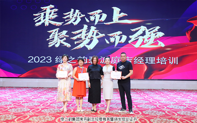 培訓臨近結(jié)束,綠之韻集團常務(wù)副總經(jīng)理梅其慧為綠之韻碧波庭的家人們頒發(fā)培訓結(jié)業(yè)證書,并代表集團公司向家人們致以誠摯的問候,感謝綠之韻碧波庭事業(yè)伙伴一直以來對綠之韻的信任與支持。今年,是綠之韻與碧波庭牽手合作的第 13 個年頭,雙方互助共贏,取得了經(jīng)濟效益和品牌價值的“雙豐收”。未來,集團公司將繼續(xù)給予各位市場伙伴全方位的支持與幫助,努力建設(shè)一個更加穩(wěn)定、更加便捷、更加優(yōu)質(zhì)的健康事業(yè)平臺,為市場發(fā)展保駕護航。希望每一位綠之韻人都能夠秉承初心,再接再厲,開創(chuàng)屬于自己的事業(yè)新篇章!
