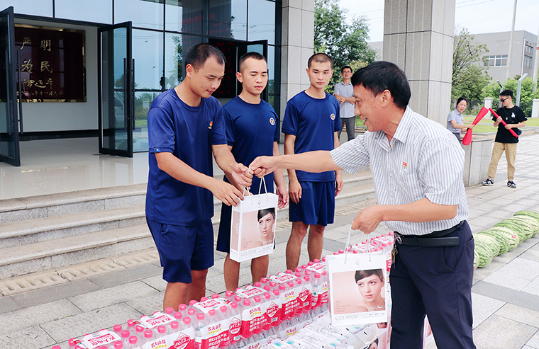 為慶祝建軍96周年,進一步弘揚新時代愛國擁軍的光榮傳統(tǒng),營造軍民團結、和睦和諧的良好氛圍,2023年8月1日,綠之韻集團黨委組織開展“慶八一·送清涼”慰問瀏陽市金陽消防救援站指戰(zhàn)員主題黨日活動。綠之韻集團常務副總裁胡均安,黨委書記劉云,黨委副書記許達仲,工會主席馮紅帶領集團黨委各支部退伍軍人、日用品工廠安全專干及行政后勤安全專干等赴共建單位——瀏陽市金陽消防救援站,向執(zhí)勤備戰(zhàn)一線的消防指戰(zhàn)員們致以節(jié)日祝福,送上慰問物資。