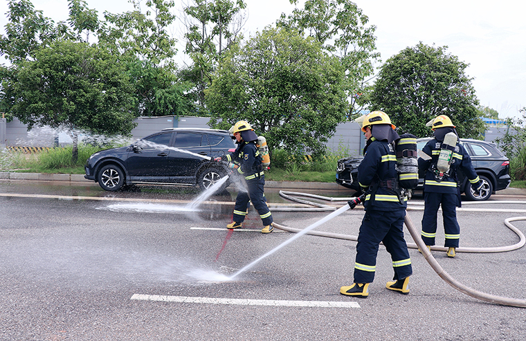 綠之韻集團黨委書記劉云向消防救援站一直以來在維護群眾生命財產安全和社會和諧穩(wěn)定方面做出的貢獻表達了感謝。金陽消防救援站站長何暉帶領大家實地參觀了器材裝備庫、體能訓練館、活動室、會議廳、宿舍等。目之所及干凈整潔,消防官兵精神飽滿,何站長從火災防控、執(zhí)勤備戰(zhàn)、消防裝備等方面進行簡要解說?!跋肴罕娭?,急群眾之所急,我們將始終戰(zhàn)斗在防火滅火、救災搶險第一線,為保障群眾生命安全和財產安全保駕護航?!辩H鏘有力的誓言,一往無前的斗志,將軍人愛崗敬業(yè)、擔當奉獻的本色展現(xiàn)得淋漓盡致。隨后,消防指戰(zhàn)員們?yōu)榇蠹規(guī)砹艘粓鱿乐R演練,從救援工具到火災事故預防,從安全隱患排查到應急搶險救援,演練別開生面,讓人過目不忘。
