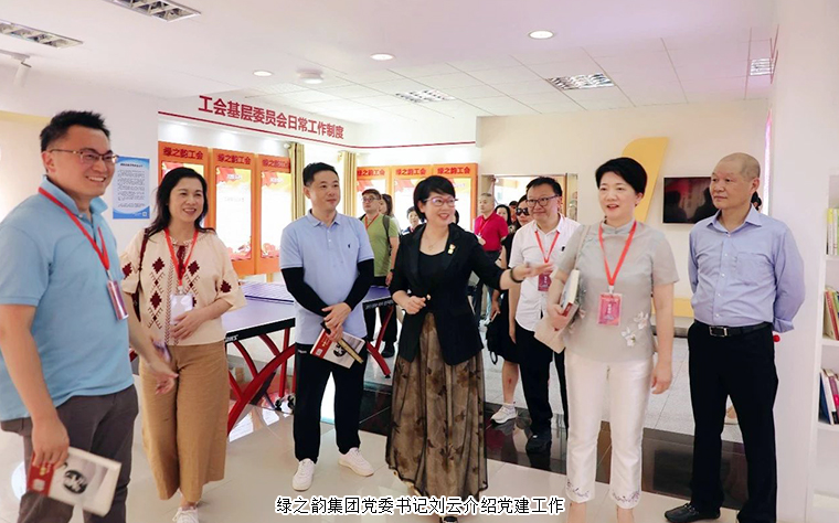 隨后,代表團(tuán)一行來到黨建文化教育基地。綠之韻集團(tuán)黨委書記劉云就非公黨建情況向考察組一行作了詳細(xì)介紹。綠之韻始終將非公黨建工作置于發(fā)展戰(zhàn)略高度,自2006年成立黨支部,2013年獲批成立黨總支,2016年8月獲批成立黨委以來,堅(jiān)持構(gòu)建以集團(tuán)黨組織為核心,以集團(tuán)工會(huì)、公益基金會(huì)為主體,注重紅色基因塑造的新時(shí)代非公黨建新生態(tài),實(shí)施“指導(dǎo)式”“責(zé)任式”“溫情式”管理,在全行業(yè)內(nèi)創(chuàng)建了第一家黨建文化教育基地,形成了具有綠之韻特色的非公黨建工作品牌。