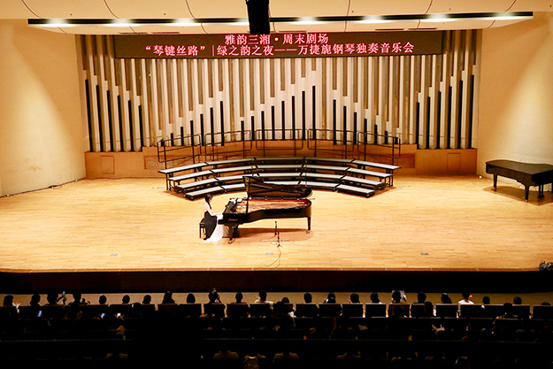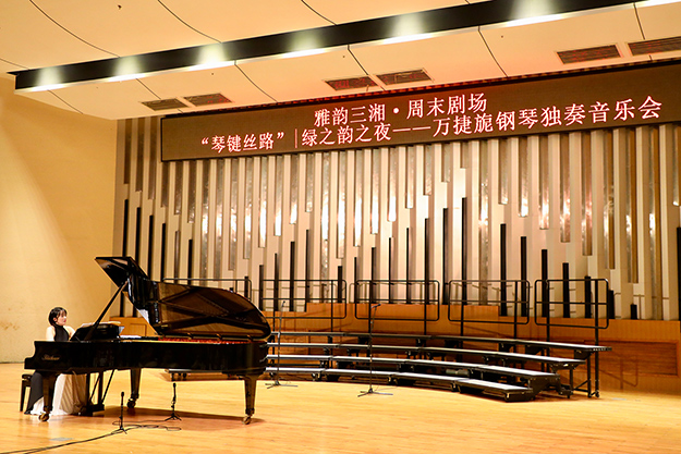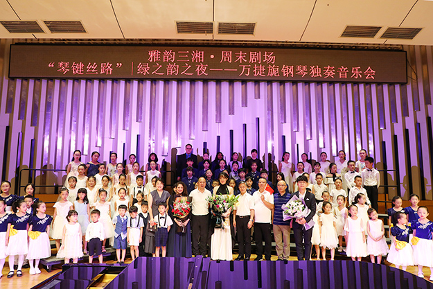 2019年8月24日晚,由湖南省委宣傳部、湖南省文化和旅游廳、湖南省教育廳、湖南省廣播電視臺(tái)、湖南省演藝集團(tuán)聯(lián)合主辦,綠之韻集團(tuán)總冠名的“綠之韻之夜·萬捷旎鋼琴獨(dú)奏音樂會(huì)”在湖南音樂廳舉行。湖南省政協(xié)副主席、致公黨湖南省委主委胡旭晟,湖南省演藝集團(tuán)黨委書記吳友云、總經(jīng)理胡俊,湖南省政協(xié)委員、綠之韻集團(tuán)董事長胡國安,綠之韻集團(tuán)董事總裁、湖南省綠之韻公益基金會(huì)理事長勞嘉等領(lǐng)導(dǎo)親臨音樂會(huì)現(xiàn)場(chǎng),跟隨旅德青年鋼琴演奏家萬捷旎的美妙琴聲,和樂迷朋友一起領(lǐng)略“中外作曲家筆下的中國”。