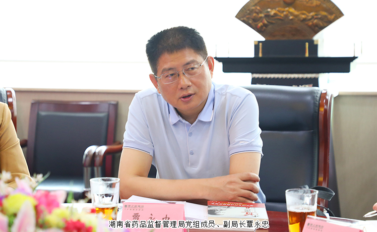2023年8月10日,湖南省藥品監(jiān)督管理局黨組成員、副局長(zhǎng)覃永忠,湖南省藥品審評(píng)與不良反應(yīng)檢測(cè)中心副部長(zhǎng)潘靜,湖南省藥品監(jiān)督管理局化妝品監(jiān)督管理處一級(jí)主任科員陳李一行蒞臨綠之韻調(diào)研指導(dǎo)。湖南省政協(xié)委員、綠之韻集團(tuán)董事總裁勞嘉,產(chǎn)品綜合管理部產(chǎn)品總監(jiān)王薇等公司領(lǐng)導(dǎo)陪同。