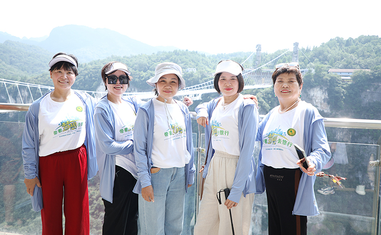 旅程最后兩天,綠之韻家人們來(lái)到了被稱(chēng)為神秘的“潘多拉世界”袁家界景區(qū)及以峰稱(chēng)奇、以谷顯幽、以林見(jiàn)秀的張家界國(guó)家森林公園。在袁家界最著名的景點(diǎn)是電影《阿凡達(dá)》中的懸浮山“哈利路亞山”的取景地——乾坤柱。一進(jìn)入景區(qū),矗立在綠之韻家人們面前的就是萬(wàn)頃峰林怪石嶙峋,層巒疊嶂危峰兀立,仿佛是天地間有人豪氣萬(wàn)丈地?fù)]劍篆刻而立,又仿佛有人精雕細(xì)琢而成。景區(qū)內(nèi)風(fēng)光旖旎,尤以云海、石濤、冬雪、霞日最為壯觀(guān)。隨后,大家乘坐有“天下第一梯”之稱(chēng)的——百龍?zhí)焯?,山峰隨著電梯的飛速上升,到達(dá)頂端的風(fēng)景奇異,驚喜連連,頗有一覽眾山小的雄偉。一路上,大家全程心情愉悅,歡笑不斷,紛紛用手機(jī)將美好定格,留下一張張美麗的倩影。