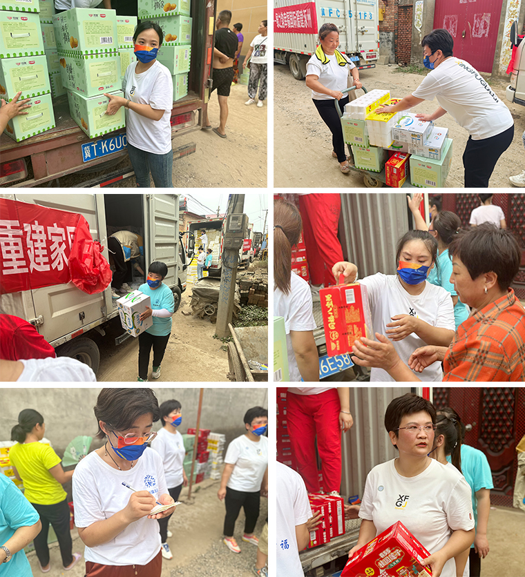 自災(zāi)情發(fā)生以來,湖南省綠之韻公益基金會(huì)高度關(guān)注河北涿州等地的受災(zāi)情況。在了解災(zāi)區(qū)重建的需求后,綠之韻公益基金會(huì)理事、綠之韻集團(tuán)副總裁夏運(yùn)良第一時(shí)間召集河北地區(qū)的幸福國(guó)際家人們,迅速組織籌集援助物資,通過多方調(diào)度,及時(shí)調(diào)配了急需的水、食物、衛(wèi)生用品、生活用品等價(jià)值10萬余元的緊缺物資。家人們不懼酷暑,不畏險(xiǎn)情,用最短時(shí)間將救援物資打包裝車,滿載物資的6輛大貨車從河北保定出發(fā),緊急奔赴災(zāi)情形勢(shì)嚴(yán)峻的河北省涿州市豆莊鎮(zhèn)中代屯村和東代屯村等地展開慰問救援工作。