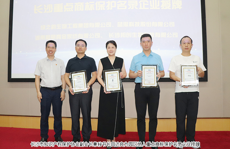 隨后,長沙市知識產(chǎn)權(quán)保護(hù)協(xié)會副會長兼秘書長田達(dá)良為園區(qū)納入重點(diǎn)商標(biāo)保護(hù)名錄企業(yè)授牌。綠之韻集團(tuán)申報(bào)的“綠之韻”商標(biāo)成功入選2023年首批長沙重點(diǎn)商標(biāo)保護(hù)名錄。據(jù)了解,此次重點(diǎn)保護(hù)商標(biāo)評選有著非常嚴(yán)苛的標(biāo)準(zhǔn),通過行業(yè)協(xié)會、專家組評審、商保委審議等層層篩選,要求品牌享有較高知名度,具有一定市場影響力、商標(biāo)價(jià)值較高等,旨在為品牌建設(shè)工作提供有力保障。