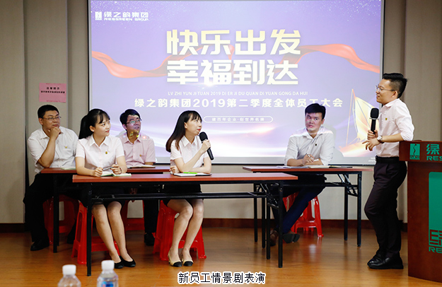 會(huì)議在全體員工宣讀《綠之韻工作宣言》的誦讀聲中拉開序幕。會(huì)上,上半年新入職的員工上臺(tái)做自我介紹,并獻(xiàn)上精心準(zhǔn)備的節(jié)目表演。他們作為新鮮血液,進(jìn)一步增強(qiáng)了公司的人才體系和創(chuàng)新能力。隨后,主持人以“快樂(lè)出發(fā) 幸福到達(dá)”為主題,回顧了2019年上半年公司重大活動(dòng),全體員工的內(nèi)心獲得了再創(chuàng)輝煌的無(wú)限力量。