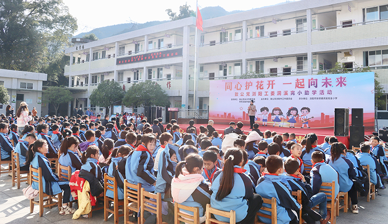 為助力鄉(xiāng)村振興,持續(xù)擦亮“致公助學”品牌,2023年12月14日,致公黨瀏陽工委走進張坊鎮(zhèn)洞溪完小開展“同心護花開,一起向未來”助學活動。長沙市人大常委、致公黨長沙市委專職副主委彭磊,致公黨長沙市委副主委陳旻;中共瀏陽市委統(tǒng)戰(zhàn)部常務副部長焦清平;中共瀏陽市張坊鎮(zhèn)黨委副書記、鎮(zhèn)長石盼等領導參加活動。中國致公黨黨員,長沙市人大代表,湖南省長沙市光彩事業(yè)基金會理事長,綠之韻集團董事長胡國安,綠之韻公益基金會副理事長、綠之韻集團黨委書記劉云受邀參加活動。
