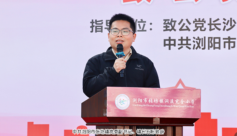 活動最后,致公黨長沙市委專職副主委彭磊講話。他首先代表致公黨長沙市委會向中共瀏陽市委統(tǒng)戰(zhàn)部,瀏陽市教育局和張坊鎮(zhèn)對本次活動給予的大力支持表示衷心的感謝,向致公黨瀏陽市工委成功舉辦此次助學活動表示熱烈祝賀,向洞溪完小的師生們致以親切問候,向愛心企業(yè)綠之韻集團致以崇高的敬意。他向大家分享了三點感受:一是致公有為,致公助學是我們致公黨全省五大工作品牌之一,也是社會服務的一個公眾品牌。近年來我們?yōu)g陽市工委積極開展“同心護花開·一起向未來”助學活動,持續(xù)擦亮“致公助學”公益品牌。二是黨員有愛。胡國安董事長是一位致公黨黨員,同時也是一位成功的企業(yè)家,更是有口皆碑的慈善家,近年來積極帶領企業(yè)承擔社會責任,感恩回饋社會。他號召在座各位能夠發(fā)動身邊的人,積極參與到“致公助學”活動中來,共同呵護孩子健康成長,照亮學子成才之路。三是未來有光。希望受資助的困難學生能夠常懷感恩之心,刻苦學習、積極進取,自強不息,成為一個心中有夢,眼中有光,腳下有路,真正成長為我們中華民族偉大復興的棟梁之材。