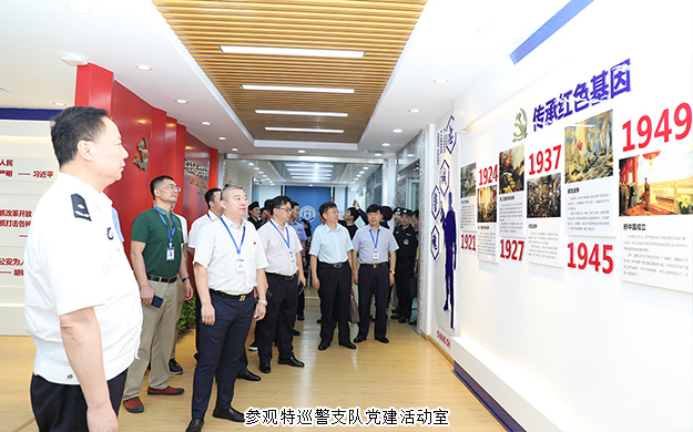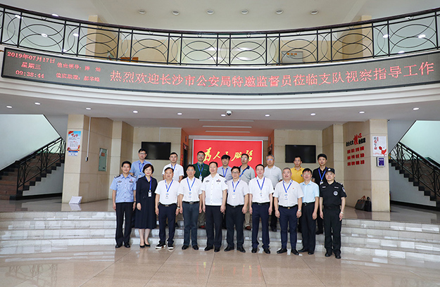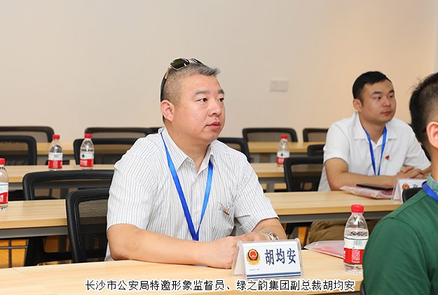 2019年7月17日,長(zhǎng)沙市公安局特邀形象監(jiān)督員、綠之韻集團(tuán)副總裁胡均安陪同長(zhǎng)沙市公安局黨委委員、副局長(zhǎng)徐波躍,黨委委員、政治部主任陳定佳;特巡警支隊(duì)黨委書記、支隊(duì)長(zhǎng)歐陽(yáng)偉沙,市公安局機(jī)關(guān)紀(jì)委書記王海清等一行赴長(zhǎng)沙市公安局特巡警支隊(duì)調(diào)研。