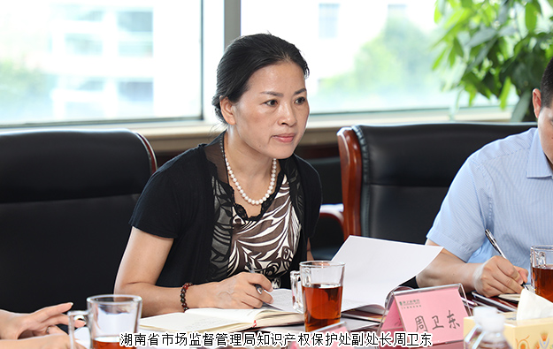 2019年7月16日,湖南省市場監(jiān)督管理局知識產權保護處副處長周衛(wèi)東、知識產權保護處主任科員侯廷、知識產權維權援助中心副主任龍建偉;瀏陽經(jīng)開區(qū)經(jīng)濟發(fā)展局副局長章文正、瀏陽經(jīng)開區(qū)經(jīng)濟發(fā)展局產業(yè)鏈科技辦科員陳騏驥一行,就推進知識產權保護項目工作蒞臨綠之韻集團調研指導。綠之韻集團副總經(jīng)理黃莎莎,綠之韻集團黨委書記劉云全程陪同調研。