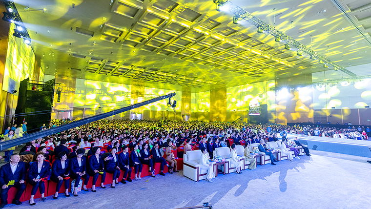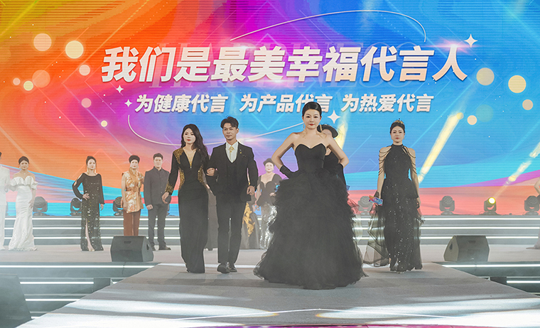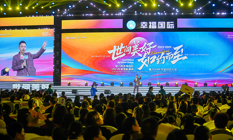 我們站在前所未有的時代,在奔流不息中翻涌向前,五載春秋的堅守與信任,讓幸福這張名片成為經(jīng)典。在現(xiàn)場最為熱烈的掌聲中,綠之韻集團董事長胡國安上臺講話。他首先向大會現(xiàn)場以及通過在線互動視頻觀看本次大會盛況的綠之韻家人致以熱烈的歡迎和誠摯的問候,并向每一位獲獎?wù)咧乱詿崃业淖YR。他說道,每一年的九月我都會去東莞的工廠,這幾年我發(fā)現(xiàn)東莞的工廠變化非常大,跟集團公司從150平米發(fā)展到如今規(guī)模,非常相似,東莞的工廠在建立之初,面積非常小,在楊總、駱總的帶領(lǐng)下,實現(xiàn)了巨大的飛躍。剛才夏總告訴我,我們的產(chǎn)品獲得了40多項專利,還是幾十項在申報中。綠之韻幸福國際的這五年,非常不容易,從小到大,從無到有,成就了無數(shù)幸福的家庭,讓工廠一步步壯大,讓市場一步步壯大,成為行業(yè)傳頌的佳話,為你們點贊!剛才在臺上看到這么多幸福代言人受到表彰和獎勵,為你們高興,為你們驕傲!每天晨起最讓我幸福的一件事情是為幸福代言人發(fā)送的朋友圈動態(tài)點贊??吹侥銈?yōu)槭袌龈冻龅纳碛埃吹侥銈優(yōu)閳F隊解決矛盾時的身影,看到你們在旅游中快樂的分享,看到你們在助力市場發(fā)展中的分享,為你們加油!我相信,更加深信,2024綠之韻的未來,你們在夏總及管理團隊的帶領(lǐng)下一定會再創(chuàng)新高,我們要善于發(fā)現(xiàn)美好,創(chuàng)造美好,把美好帶給每一個家庭,世間美好,一定會如約而至。