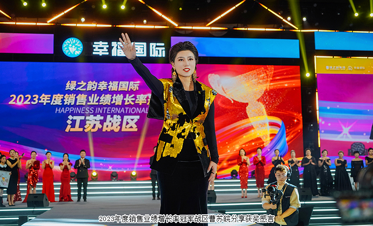 一幅畫,炙熱滾燙,一封信,用情至深。這是一份成就夢想的事業(yè),更是一條成就家庭的幸福之路。在熾熱的目光中汲取力量,讓初心依舊溫暖如初,她們恣意在一線市場上揮灑光和熱,戰(zhàn)區(qū)同心,硬核出征,活力全開,竭盡所能,終會頂峰相見。綠之韻集團總裁勞嘉,綠之韻集團副總裁、幸福導(dǎo)師夏運良“2023年度銷售業(yè)績增長率冠軍戰(zhàn)區(qū)·江蘇”頒發(fā)榮譽。綠之韻集團董事長胡國安,綠之韻集團副總裁、幸福導(dǎo)師夏運良共同為“2023年度銷售業(yè)績增長總量冠軍戰(zhàn)區(qū)·福建頒發(fā)榮譽。獲獎戰(zhàn)隊代表曹蘇皖、鄭方平分享獲獎感言。