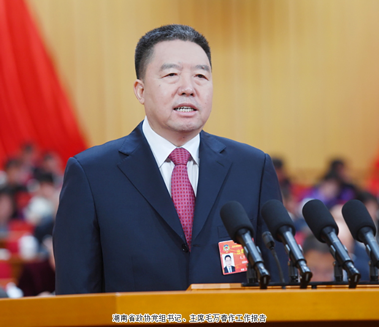 上午9時,胡偉林宣布大會開幕,全體起立,奏唱國歌。毛萬春代表政協(xié)湖南省第十三屆委員會常務(wù)委員會向大會作工作報告。報告全面回顧總結(jié)了十三屆省政協(xié)2023年的主要工作成績。毛萬春指出,一年來,省政協(xié)工作突出重點、體現(xiàn)特點、打造亮點,主要抓了六件大事:以學(xué)習(xí)貫徹習(xí)近平新時代中國特色社會主義思想主題教育引領(lǐng)政協(xié)履職,深入學(xué)習(xí)宣傳貫徹省委十二屆四次、五次全會精神,全力助推縣域經(jīng)濟高質(zhì)量發(fā)展,探索開展改善生態(tài)環(huán)境專項民主監(jiān)督,大力支持長沙建設(shè)全球研發(fā)中心城市,著力錘煉過硬作風(fēng)。同時,省政協(xié)堅持全面履職,統(tǒng)籌推進各項工作:強化理論武裝,牢牢把握正確政治方向;服務(wù)中心大局,聚焦高質(zhì)量發(fā)展獻計出力;踐行履職為民,助力增進民生福祉;加強團結(jié)聯(lián)誼,凝聚現(xiàn)代化新湖南建設(shè)合力;積極探索創(chuàng)新,推動經(jīng)常性工作提質(zhì)增效。