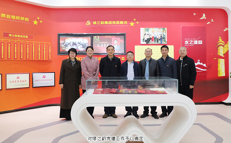 隨后,領(lǐng)導(dǎo)一行來到綠之韻集團(tuán),參觀了國際會議中心展廳、黨建文化教育基地。勞嘉總裁詳細(xì)講解了綠之韻集團(tuán)的產(chǎn)業(yè)布局、產(chǎn)品生產(chǎn)、文化品牌建設(shè)、公益慈善活動及非公黨建工作的開展情況。領(lǐng)導(dǎo)一行對綠之韻深耕大健康產(chǎn)業(yè)、積極投身公益慈善事業(yè)及“家的文化、水的精神”的企業(yè)文化理念給予高度評價(jià)和贊許。