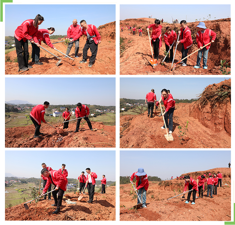 春風(fēng)吐綠、草木初萌。到達(dá)洞陽鎮(zhèn)義務(wù)植樹基地后,林業(yè)站易申海站長為大家講解了種植的步驟和要點,綠之韻的黨員同志們在學(xué)習(xí)了種樹的相關(guān)知識后,斗志昂揚,擼起袖子,以飽滿的狀態(tài)、實干的精神投入到植樹活動中,揮鍬鏟土、扶苗培土,有條不紊完成每道工序,齊心協(xié)力栽種下一棵棵樹苗,確保栽一棵活一棵,植一片綠一方。綠之韻國際大酒店黨支部書記胡均安現(xiàn)場指導(dǎo)大家栽種技巧和方法,并表示,這不僅是一次植樹造林的黨日活動,更是一次綠色發(fā)展的宣傳教育。通過開展植樹節(jié)主題黨日活動,綠之韻的黨員同志們充分展現(xiàn)了勇?lián)厝蔚南蠕h模范作用,發(fā)揮了共產(chǎn)黨員的團隊合作精神,以實際行動爭當(dāng)新時代“綠水青山就是金山銀山”理念的傳播者和踐行者,共同為建設(shè)美麗瀏陽增綠添彩。