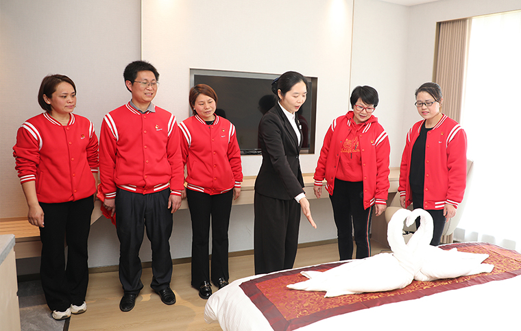 植樹活動結(jié)束后,大家來到了綠之韻國際大酒店,在服務(wù)人員的講解下,對消防安全設(shè)施、功能布局、配套設(shè)施、文化植入、裝修用材進(jìn)行詳細(xì)了解,對主樓的大廳、廊道、商務(wù)中心、客房房間布局、房型配比等進(jìn)行了實地參觀。這是綠之韻國際大酒店提質(zhì)改造后接待的首次主題黨日活動參觀,方便的設(shè)施、周到的服務(wù),讓在場的黨員同志紛紛點贊。綠之韻國際大酒店于2005年由綠之韻集團投資建成,是一家集商務(wù)、會議、度假于一體的現(xiàn)代綜合型酒店。酒店設(shè)有總統(tǒng)套房、各類型客房及溫馨公寓共203間,同時配套中餐廳、多功能國際宴會廳,商務(wù)中心、精品商店等服務(wù)。酒店以先進(jìn)齊全的設(shè)施,綠色環(huán)保的環(huán)境,“家”的服務(wù)理念,為全球來到綠之韻總部的家人提供貼心和溫暖的服務(wù),滿足消費者的多元化需求。