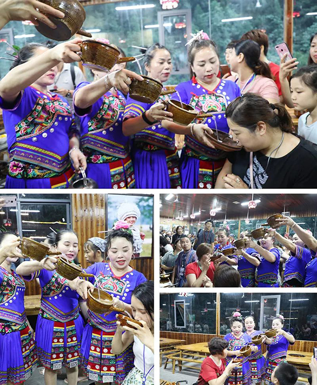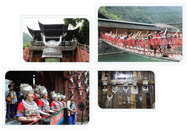 經(jīng)過了激情的漂流,綠之韻家人們來到了美麗的夯吾苗寨。夯吾苗寨在苗語中寓意著“峽谷溪邊美麗的苗寨”。寨內(nèi)保存著武陵大山少數(shù)民族特有的木質(zhì)結(jié)構(gòu)吊腳樓風(fēng)貌。綠之韻家人們在此親身體驗唱山歌、飲攔門酒、哭嫁等苗族風(fēng)俗,體驗“神秘湘西、茶富古丈"的氣息與魅力。綠之韻家人們在導(dǎo)游的帶領(lǐng)下來到苗族阿妹的家中品茗休憩,走街串巷感受苗寨不一樣的風(fēng)光。