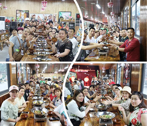 張家界魅力湘西國際文化廣場,是張家界武陵源景區(qū)歷史最悠久的演藝劇院,綠之韻家人們在此觀看了《馬桑樹兒搭燈臺》《哭嫁》《湘西趕尸》等經(jīng)典劇目和場外篝火演出,體驗了一把土家硬氣功和湘西三大蠱迷巫術(shù)表演上刀山、下火海。精彩的演出贏得現(xiàn)場綠之韻家人們的陣陣叫好聲。